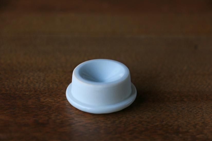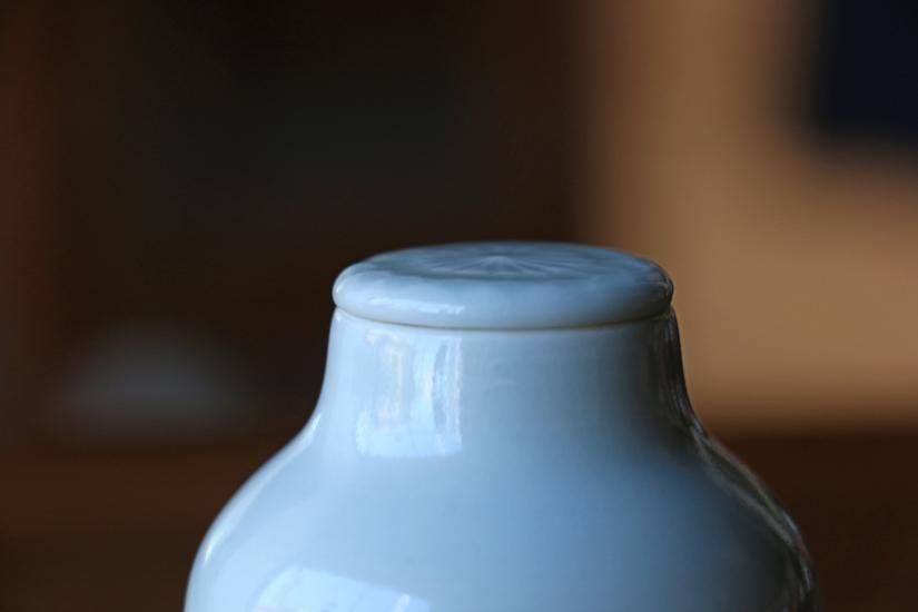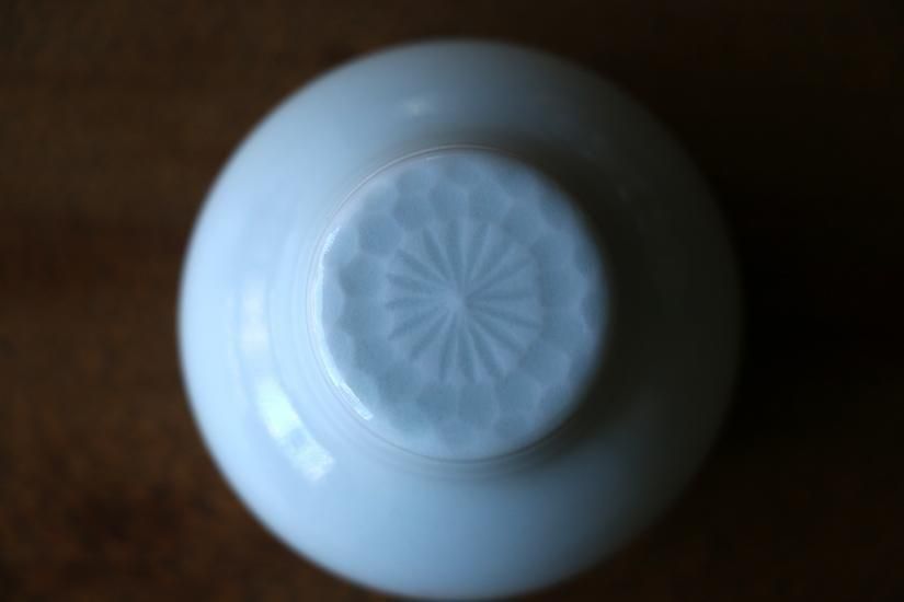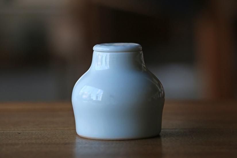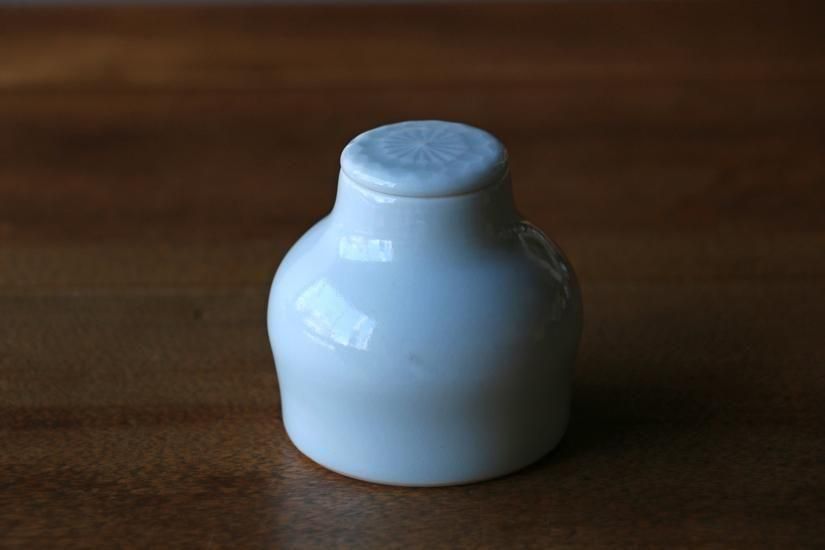 ほんの少し青白い白磁が美しく、蓋に飾られた文様や有機滝でなんだかやさしい形が、とてもかわいらしいです。