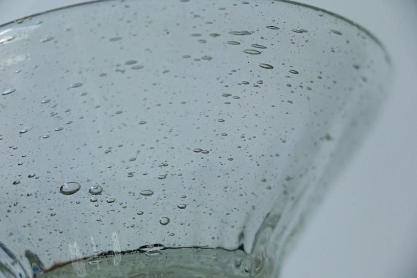 製作の工程上、ガラスの中に気泡、底にポンテ跡、またまれに、表面に細かな擦り傷、錆び、小さな黒い炭が見られます。