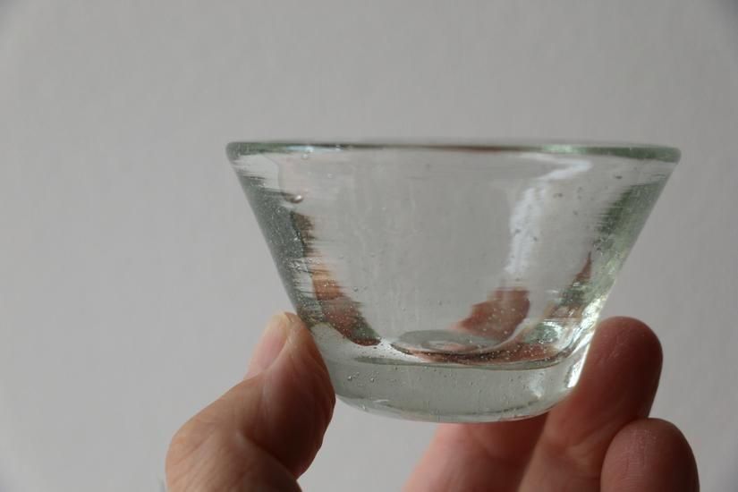 製作の工程上、ガラスの中に気泡、底にポンテ跡、またまれに、表面に細かな擦り傷、錆び、小さな黒い炭が見られます。